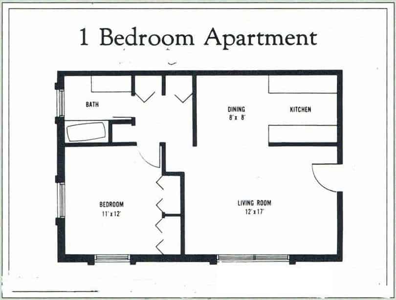 This is the floor plan for the 2 bedroom, 1 bath apartments at Cortland Park.